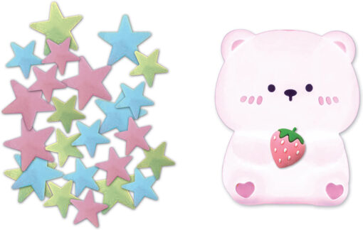 Brighten up dreary spring days with this berry cute mood light! This adorable squishy bear, holding a sweet pink strawberry, features color-changing LED lights in seven vibrant colors, plus gradient and flashing modes, to create a cozy, calming glow in any space. Simply tap the bear’s head to switch colors and modes. As a bonus, this mood-boosting gift includes glow-in-the-dark stars to create a dreamy nighttime atmosphere. Power it up with the included USB-C cable or 3 AAA batteries (not included) for a soft, magical ambiance anytime! Perfect for bedrooms, desks, or as a charming nightlight. Let the cozy vibes shine!