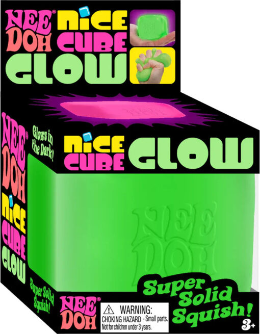NeeDoh Glow Nice Cube gives groovy a whole new look! In the dark, this groovy glob gives off a green glow that fills your hands with a squish that will blow your mind and mellow you out. NeeDoh Glow Nice Cube is filled with a non-toxic, dough-like compound that always returns to its original shape. When the sun goes down, lighten up your mood with Glow in the Dark NeeDoh!