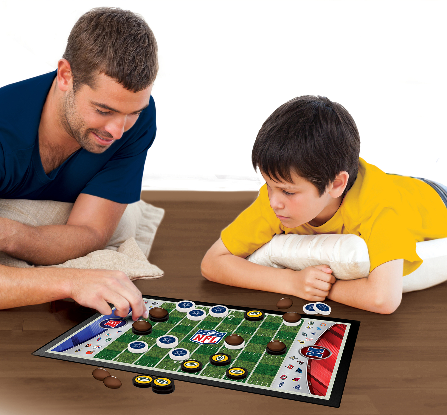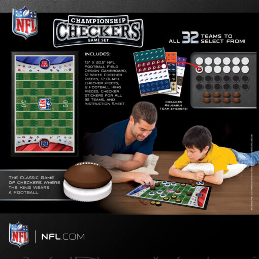 If you’re a fan of the NFL, then you’re going to love this officially licensed MasterPieces NFL Checkers Board Game. This classic game of checkers is a ton of fun for children and adults ages 6 and up, and it’s a great way to show your NFL pride. This checkers game comes with 24 League checkers pieces, 8 football helmet king pieces, a 13 inches x 21.375 inches game board, 1 sticker sheet, and an instruction sheet. So get ready to put your skills to the test and crown yourself the checkers champion!