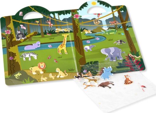 Enjoy endless animal adventures with dozens of wild creatures! This reusable puffy sticker set includes a sturdy double-sided, fold-out background panel, plus 42 puffy stickers. Use the stickers to fill savannah or jungle scene with big cats, birds, elephants, hippos, and more. Easy to place, layer, and reposition, the reusable stickers make it easy to tell a story of safari adventure. Simply place the puffy stickers on the board, then change the picture whenever you’re ready to change the story! The built-in sticker collection offers endless opportunities for kids to express their creativity, all while improving fine motor skills and communication. A diecut handle and fold-and-go format make this kids’ sticker activity set great for travel, too!