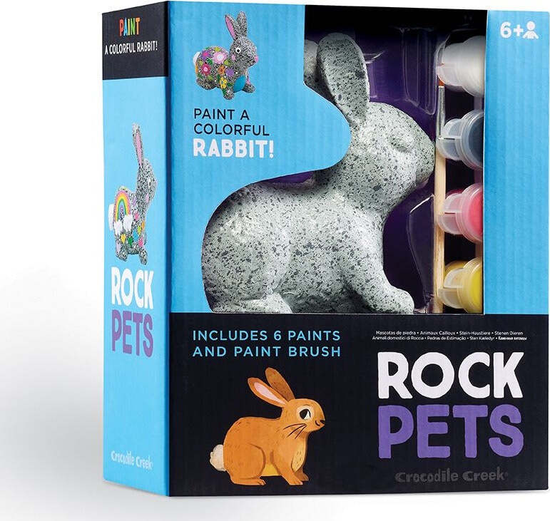 Attention all aspiring artists! Get ready to embark on a creative adventure with our captivating Little Rabbit Rock Pet Painting Set. It’s not just any ordinary painting experience—it’s a chance to transform a rabbit into a 3-D masterpiece of your very own! Each set includes a kid-safe resin animal and a set of six vibrant non-toxic weather proof paints, everything you need to make a masterpiece.