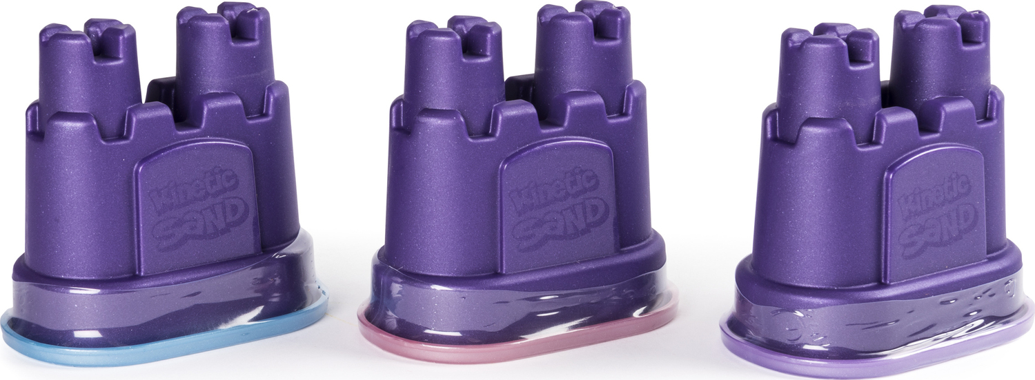 - Each pastel shade of sand shimmers and glistens! Use the castle-shaped containers as molds and you can build your own Kinetic Kingdom!