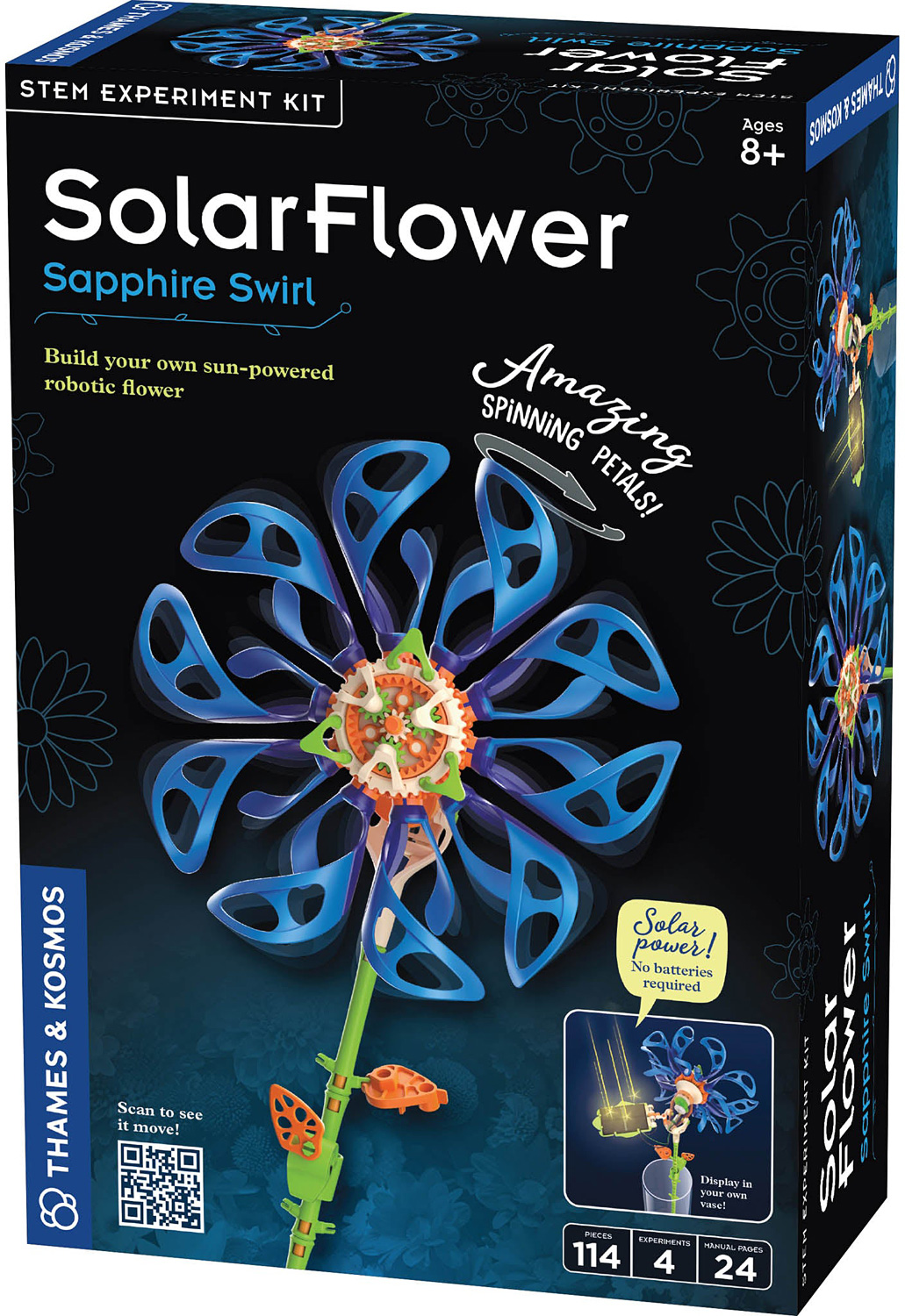 Celebrate Earth Day and the beauty of spring by building a gorgeous solar flower! This STEM kit guides ages 8+ through assembling a sapphire blue robotic flower with petals that swirl, powered by the sun. It’s a soothing, hypnotic motion that calms the senses. Kids learn about gears and how solar cells create electricity to drive a motor. Makes a wonderful Mother’s Day gift, and even has a clip for attaching inside a vase!