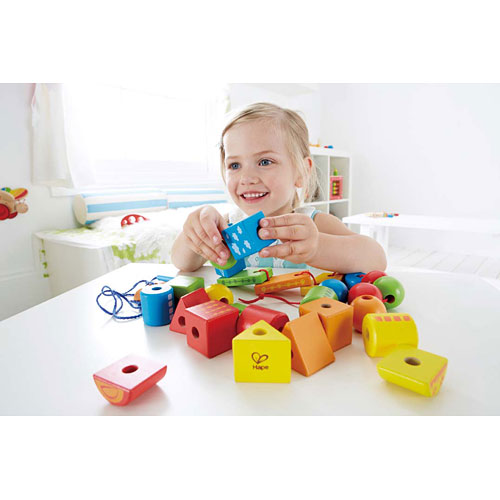 Sort the blocks: by color, shape, or pattern. Count the blocks as you lace them together!