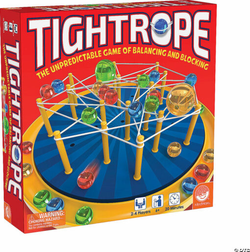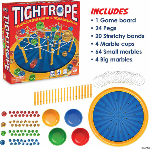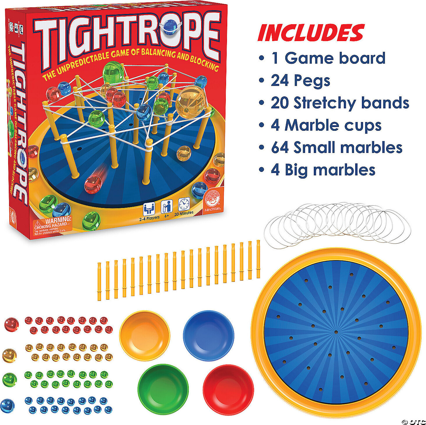 Players will flip for Tightrope, the simple yet intense strategy board game that is sure to entertain kids and adults alike! Take turns placing marbles on rubber bands that sway and bounce, adding to the suspense of this exciting family board game. But be careful, if you don’t find a fair spot for your marbles, they may fall off the tightrope and right back into your pile.