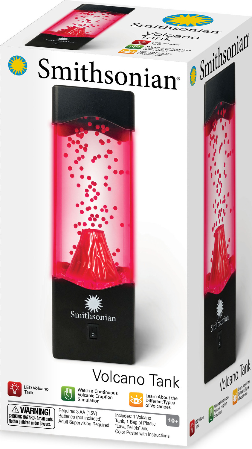 Watch a continuous volcanic eruption simulation with this LED-lit aquarium! Read more about the six different types of volcanoes and how they form from the enclosed color STEM poster.